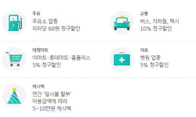 (주기적으로 혜택이 변경되니 정확한 내용은 카드사 홈페이지에서 알아보는 걸 추천합니다)