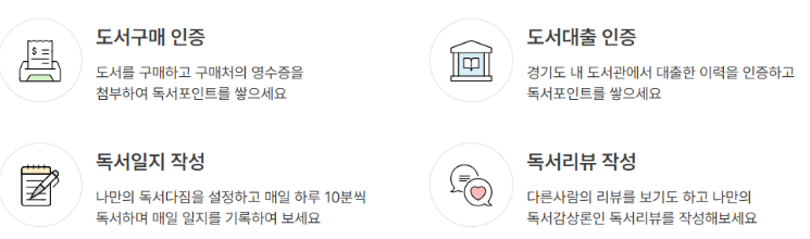 경기도의 독서포인트제는 기존의 독서 장려책과 달리, 포인트를 실제로 사용할 수 있는 지역화폐로 전환해 경제적 혜택을 제공합니다. 책을 읽는 행위가 단순한 자기계발을 넘어 경제적 가치를 창출하게 되는 것입니다. 이는 도민의 독서 습관을 형성하는 동시에 지역서점의 활성화에도 큰 도움이 될 것으로 보입니다.