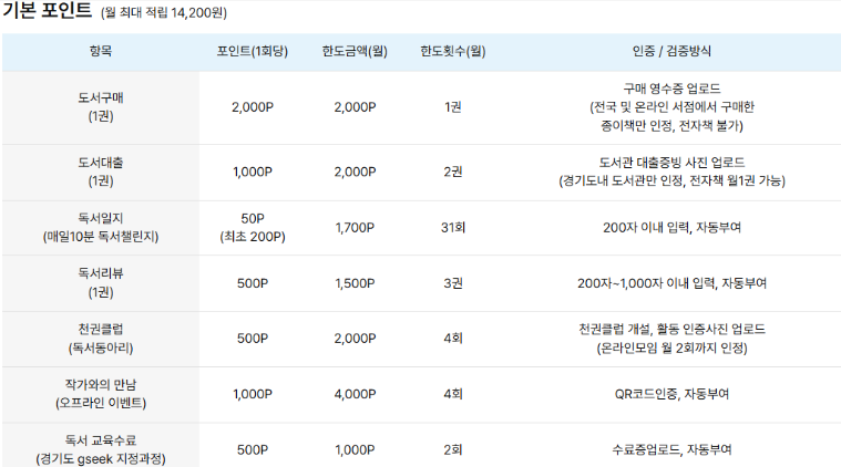 이번 제도는 만 14세 이상 경기도민을 대상으로 하며, 최대 4만 명이 참여할 수 있습니다. 독서 활동을 하면 포인트가 적립되는데, 지역서점에서 책을 구매할 경우 월 1권 한도로 2,000포인트가 적립되며, 도서관에서 책을 대여할 경우 권당 1,000포인트가 쌓이고 월 최대 2권까지 적립할 수 있습니다.