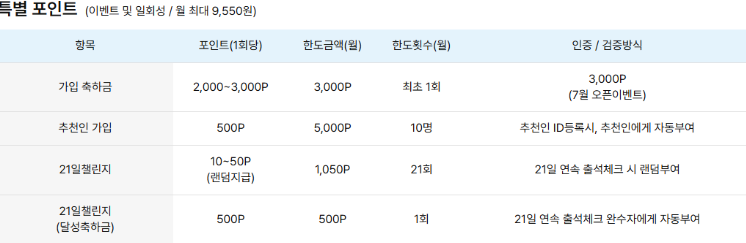 또한 21일 연속 출석 체크 이벤트도 진행되어 꾸준한 활동을 통해 더 많은 포인트를 쌓을 수 있습니다.