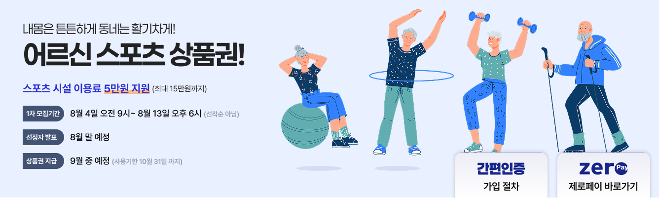 어르신 스포츠 상품권은 제로페이 모바일 상품권 형태로 지급되며전국 제로페이 가맹 스포츠시설에서 간편하게 사용할 수 있습니다.
