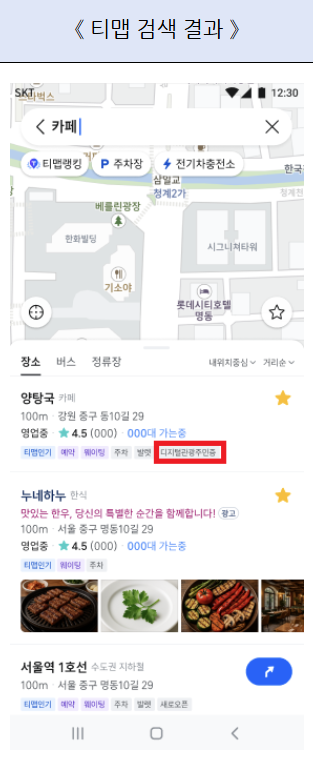 티맵은 디지털 관광주민증 사용처를 네비게이션 경로에 자동으로 표시해줍니다.