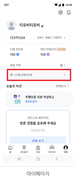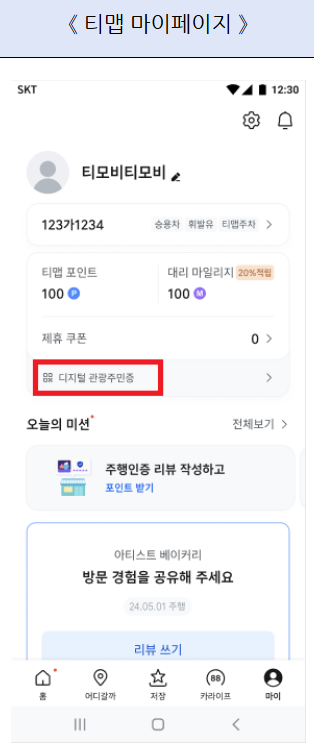 이제 티맵 앱만 켜도 디지털 관광주민증 발급이 가능합니다.
