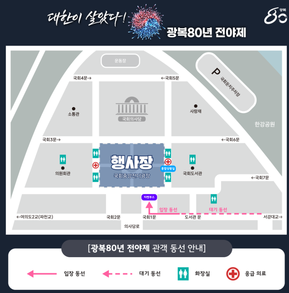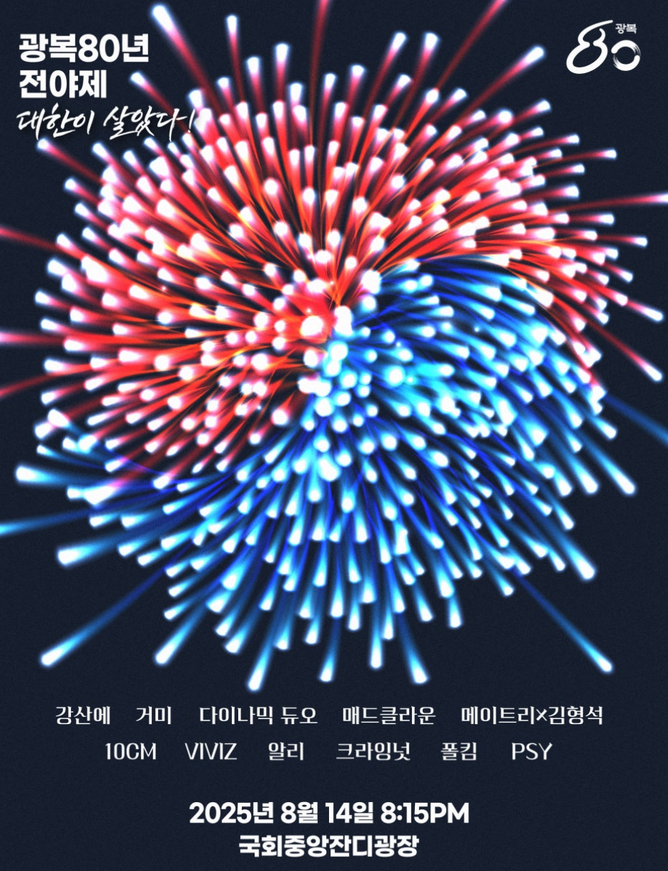 이번 광복 80년 전야제는 무료로 진행되지만 안전과 질서 유지를 위해 사전 예약제로 운영됩니다.