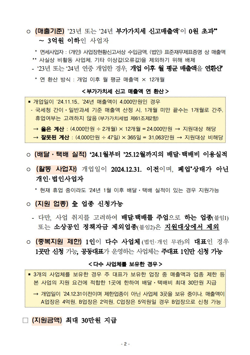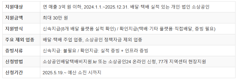배달·택배비 30만 원 지원 사업은 연 매출 3억 원 이하이면서 최근 배달 또는 택배 실적이 있는 소상공인이라면 신청할 수 있는 제도입니다.