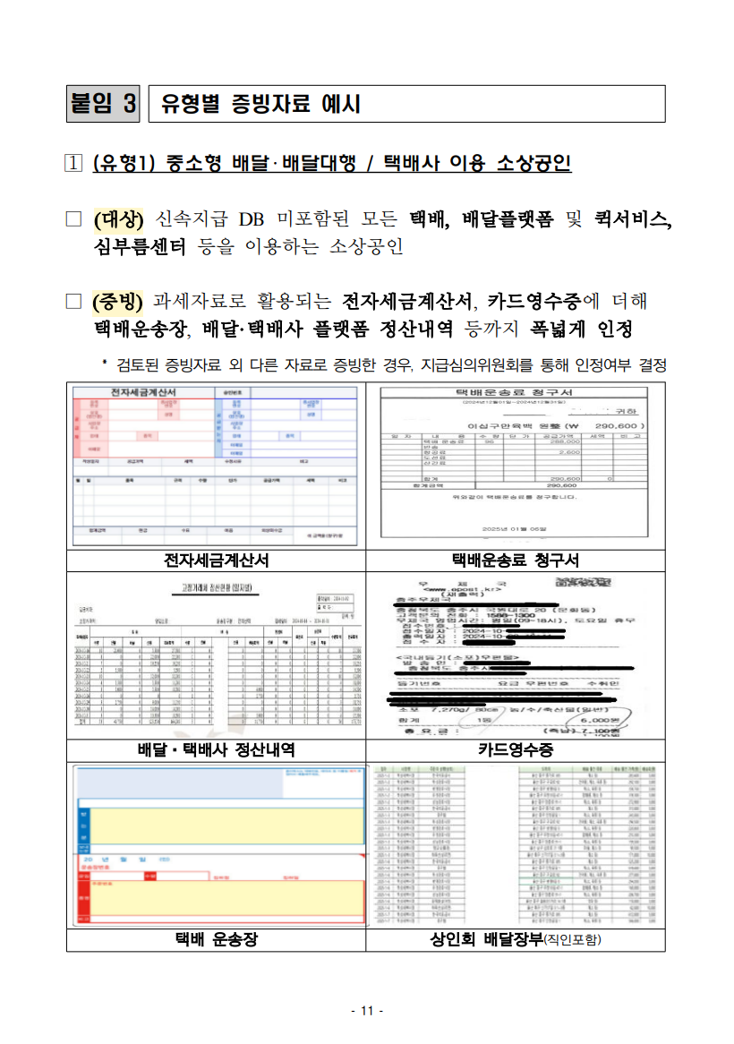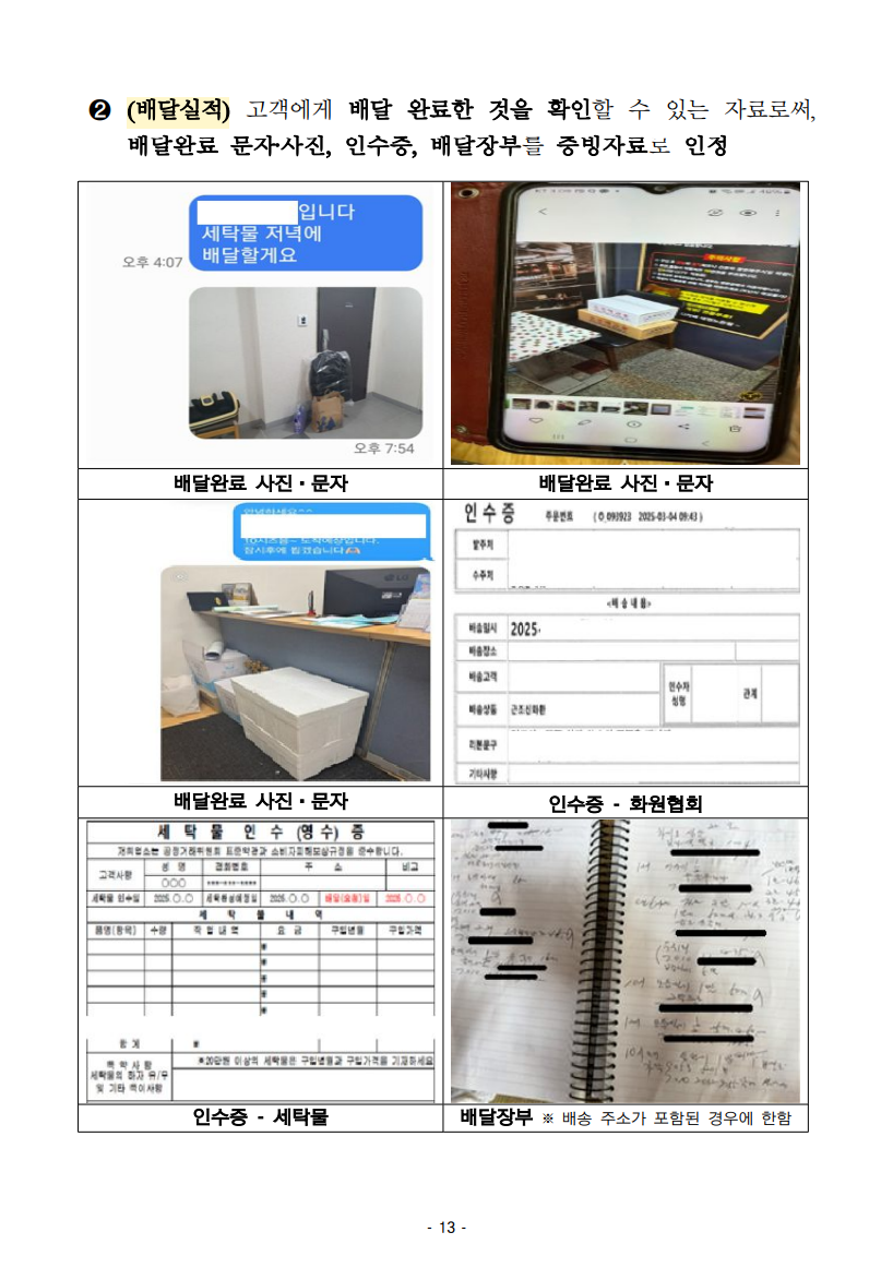 · 실적 증빙: 배달 완료 문자·사진, 인수증, 배송주소가 포함된 배달장부 등