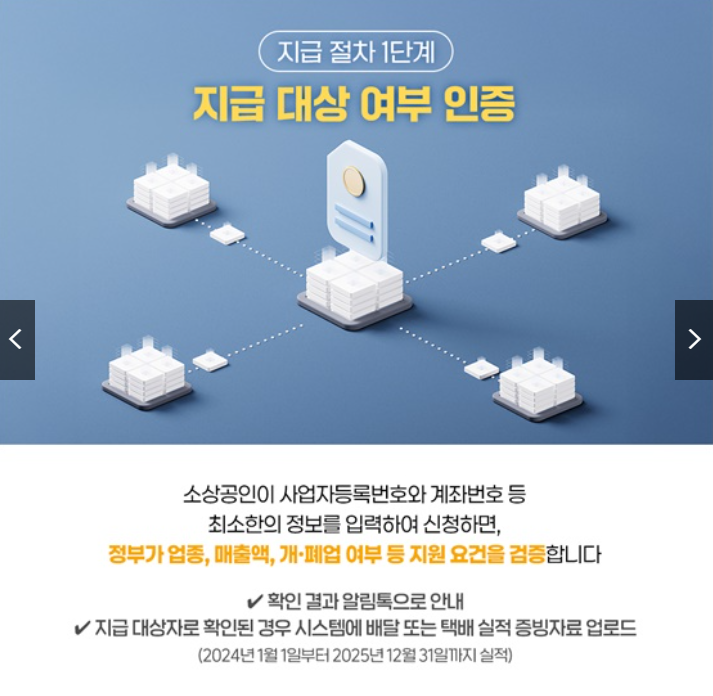 실적 증빙만 준비하면 음식점, 꽃집, 세탁소처럼 직접 배달을 하거나 택배를 이용하는 다양한 업종도 대상이 될 수 있습니다. 공동대표라면 주대표 1인만 신청할 수 있으며, 1인이 여러 사업체를 운영하더라도 1곳만 가능합니다.