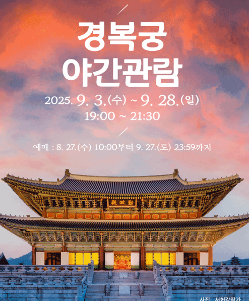 경복궁 야간관람 입장권은 2025년 8월 27일(수) 오전 10시부터 예매가 시작됩니다.