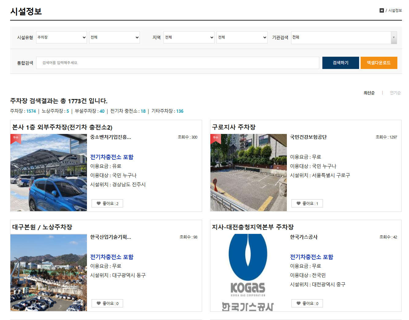 · 전국 1만여 곳 이상 등록되어 있고 전기차 전용 구역도 검색 가능.