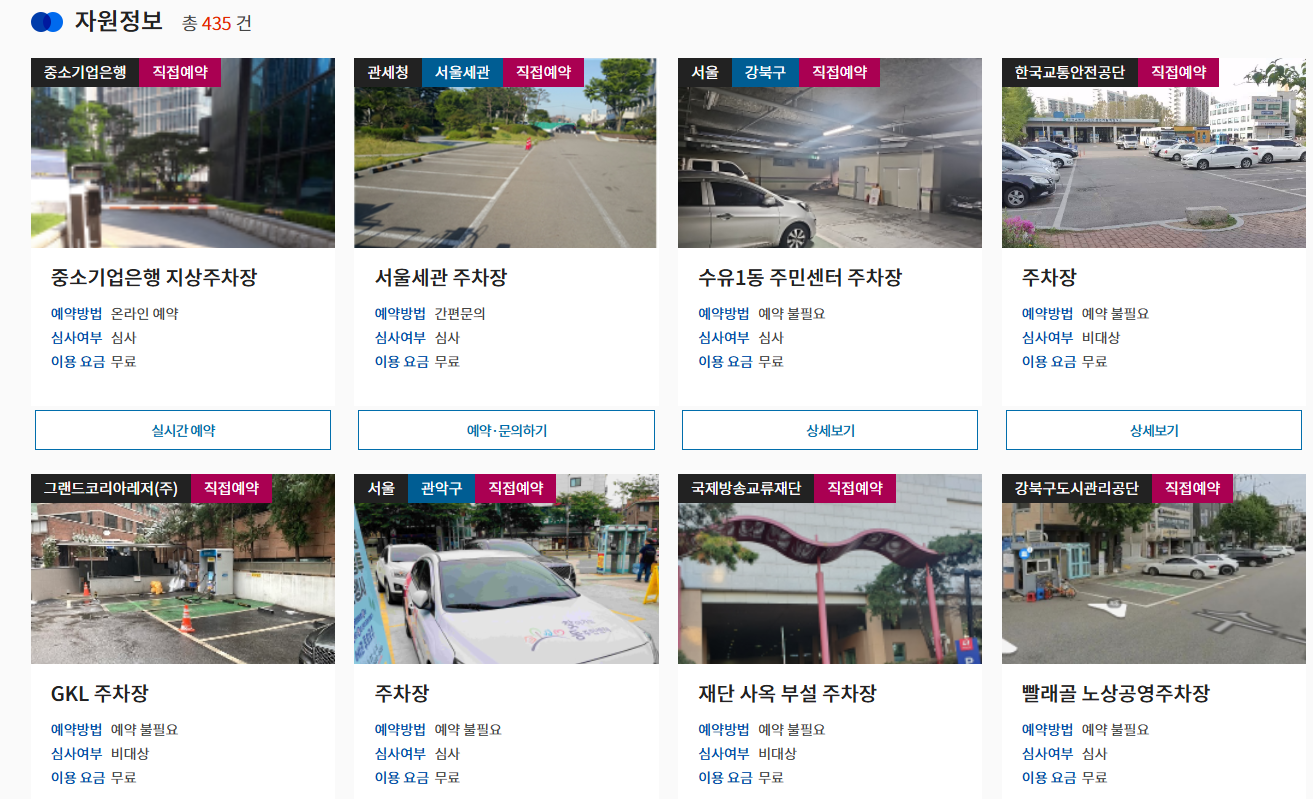 · 운영시간, 주차 가능대수, 요금, 예약 가능여부 확인