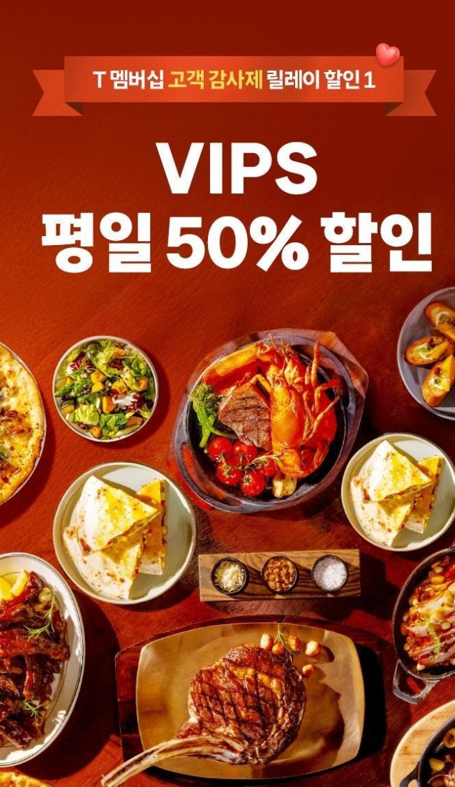놓치면 아쉬운 반값 혜택이 9월 고객 감사제 첫 제휴사에서 시작됩니다. SK텔레콤은 이번 달에도 T 멤버십 고객을 위해 외식 브랜드 빕스를 선정했습니다. 9월 1일부터 10일까지 T 멤버십 앱에서 쿠폰을 다운받으면 평일 방문 시 최대 50% 할인을 받을 수 있습니다.