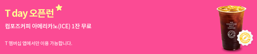 | 컴포즈커피 | 아메리카노 무료 (20만잔 선착순) | T 멤버십 앱 오픈런 쿠폰 | 9/3 단 하루 |
