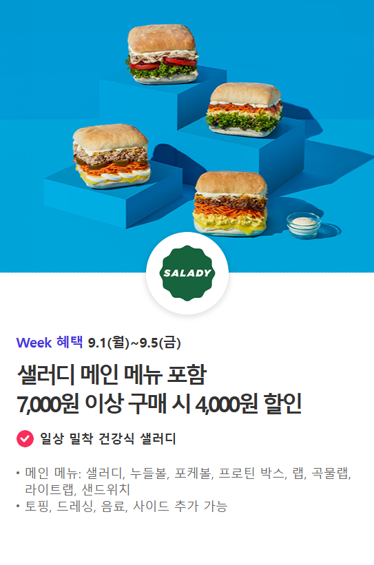 | 배달의민족 x 처갓집 | 치킨 할인 (7천 원 등) | T 멤버십 앱 쿠폰 | 9/1~9/5 |