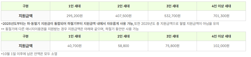📌25년부터는 지원금액이 동·하절기 구분없이 사용기간 내 자유롭게 사용 가능하므로,