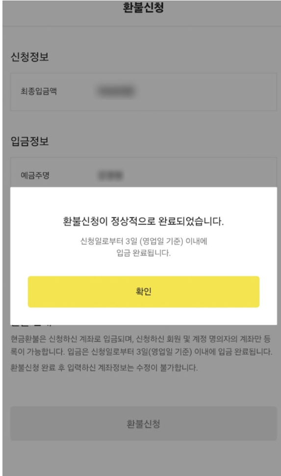 4️⃣ 환급 신청 완료 → 포인트는 즉시 반영, 현금은 최대 7일 소요