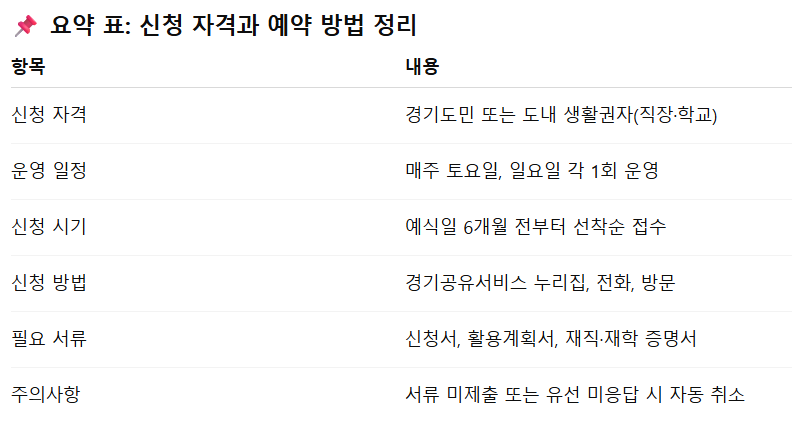 토요일과 일요일 각각 하루 한 번씩만 운영되기 때문에 연간 이용 횟수 자체가 제한적입니다.
